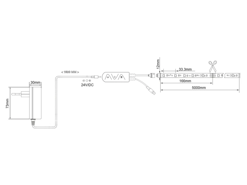 Das fünf Meter lange LED Band hat auf der Rückseite einen Klebestreifen, welcher eine einfache und schnelle Montage ermöglicht, zudem kann es einfach an den vorgesehenen Markierungen gekürzt werden, was es ideal für die persönliche Gestaltung Ihres Wohnraums macht. Der Lichtstreifen ist in schlichtem Schwarz gehalten, sodass er sich insbesondere im ausgeschalteten Zustand unauffällig in jeden Einrichtungsstil einfügt.