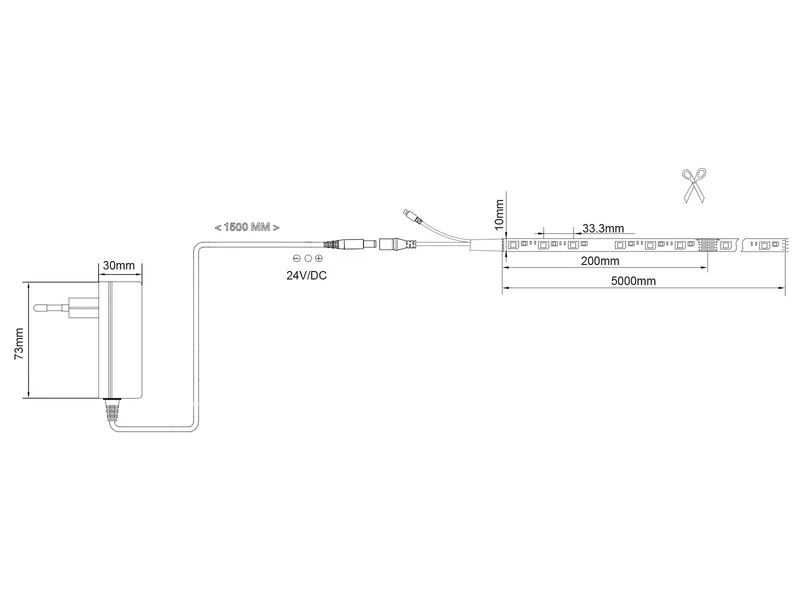 Das LED Band hat auf der Rückseite einen Klebestreifen, welcher eine einfache und schnelle Montage ermöglicht, zudem kann es einfach an den vorgesehenen Markierungen gekürzt werden, was es ideal für die persönliche Gestaltung Ihres Wohnraums macht. Der Lichtstreifen ist in schlichtem Schwarz gehalten, sodass er sich insbesondere im ausgeschalteten Zustand unauffällig in jeden Einrichtungsstil einfügt.