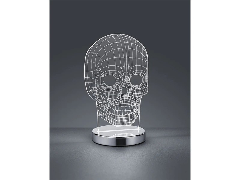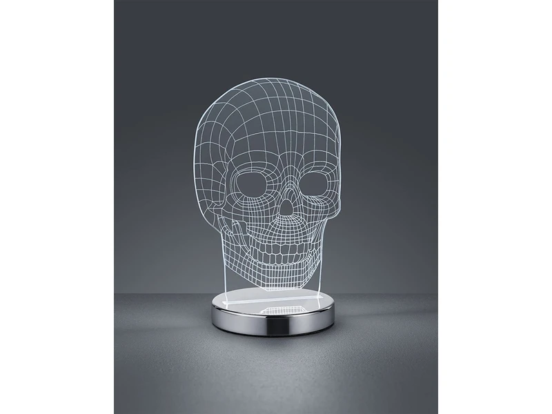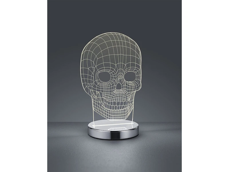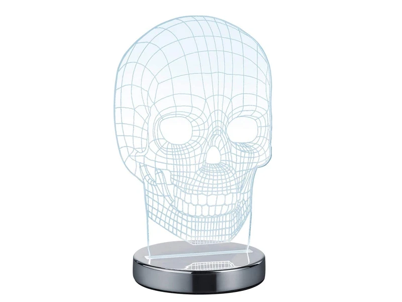 Die Tischleuchte SKULL im Totenkopf Design sollte prominent im Interior platziert werden, da sie ein- und ausgeschaltet ein Highlight darstellt.