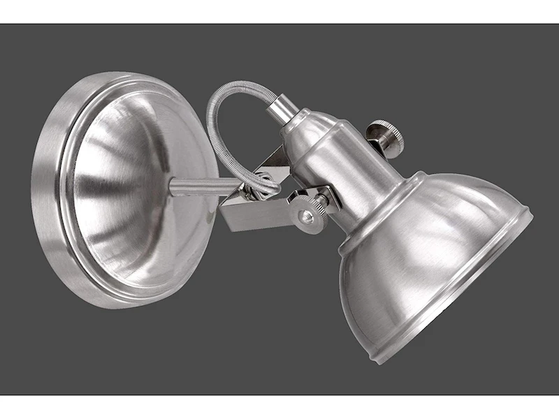 Dieser 1 flammige LED Wandstrahler präsentiert sich in einem attraktiven Designerlook verbunden mit einem nostalgischen Charme. Die Lampenschirme erinnern in der Form an Spots aus der Filmwelt. Der Leuchtenkopf lässt sich neigen und drehen, um die gewünschten Bereiche zu beleuchten. Der Retro Wandspot ist ein wahrer Allrounder: Er kann über einem Spiegel montiert und ebenso im Wohn- oder Schlafzimmer verwendet werden.