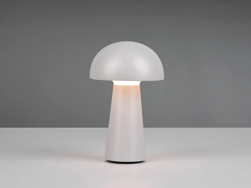 Durch die Klassifizierung IP44 ist die Leuchte vor Spritzwasser geschützt und damit auch für den Außenbereich geeignet. Durch das schlichte und reduzierte Design in Pilz Form, wird die Tischleuchte in modernem Ultimate Grau zu einem unaufdringlichen Deko Element das besonders anpassungsfähig ist.