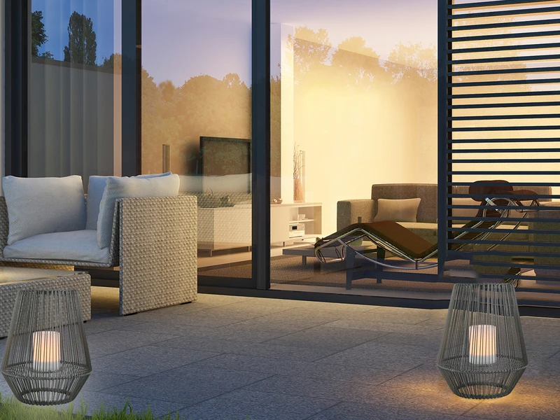 Die 30cm hohe, und mit einem Durchmesser von 26cm große Outdoor Lampe ist dank Schutzart IP44 gegen Spritzwasser geschützt und damit für den Außenbereich geeignet.