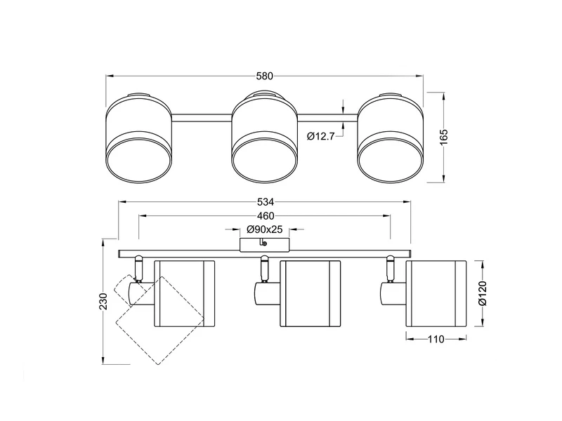 Dieser klassische 58cm breite Deckenstrahler vereint zeitloses Design mit praktischer Funktionalität.