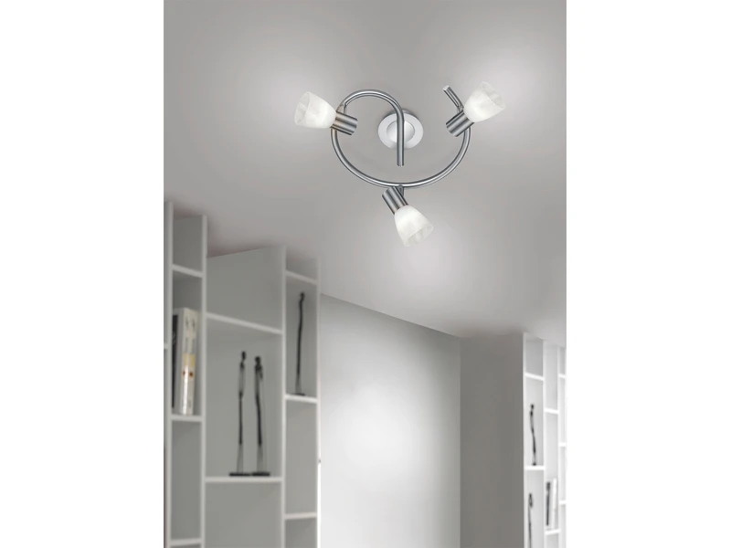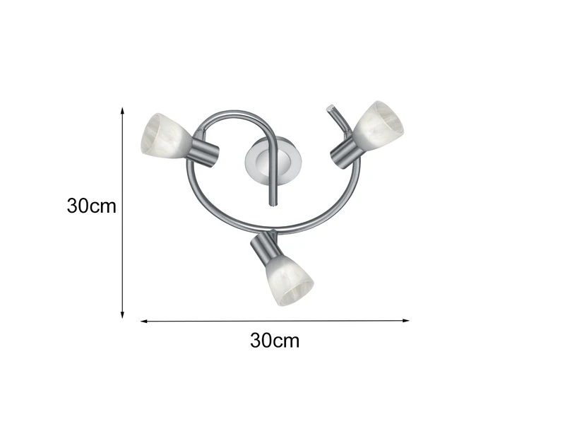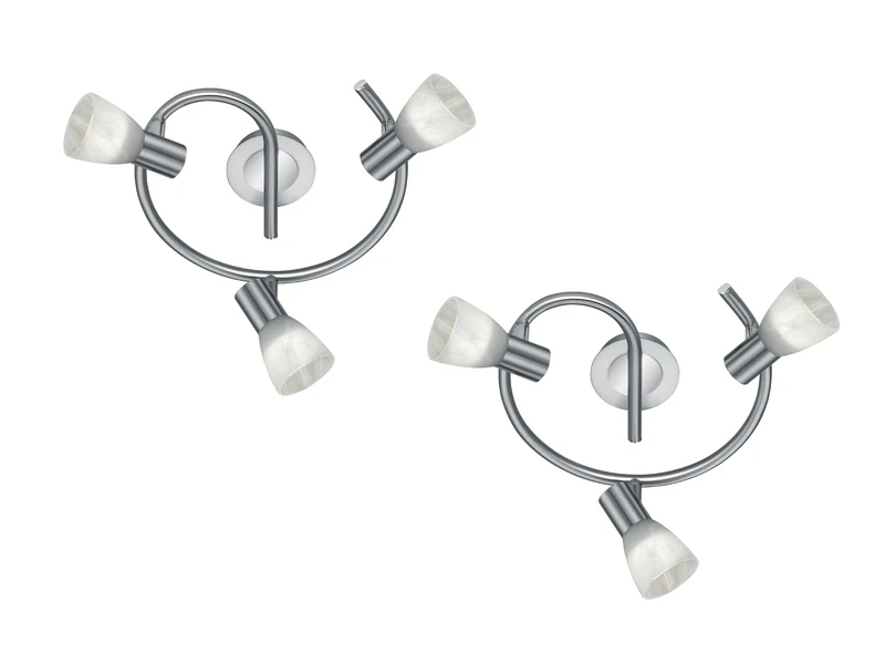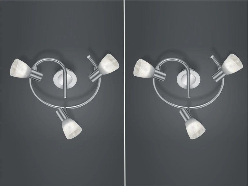 Die Alabasterfarbigen Glasschirme der Strahler Rondells mit dem Durchmesser von 30cm sind dreh-und schwenkbar, was eine gezielte Lichtausrichtung erlaubt. Der Korpus aus Metall in Silber matt rundet das zeitlos moderne Design dieser Deckenstrahlers ab. Die Deckenstrahler passen ins Wohnzimmer, Schlafzimmer oder auch ins Treppenhaus.