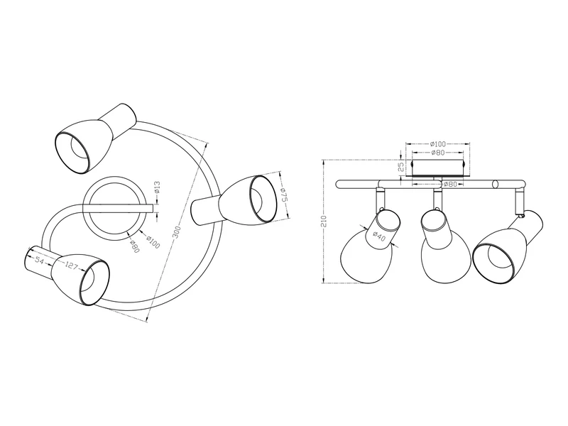 Die Leuchten sind jeweils mit drei E14 Fassungen ausgestattet und werden mit 3 austauschbaren LED Leuchtmitteln mit einer Leistung von je 5 Watt und 400 Lumen in Warmweiß geliefert.