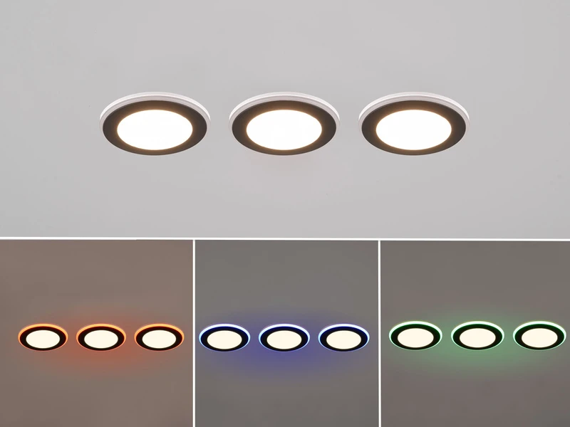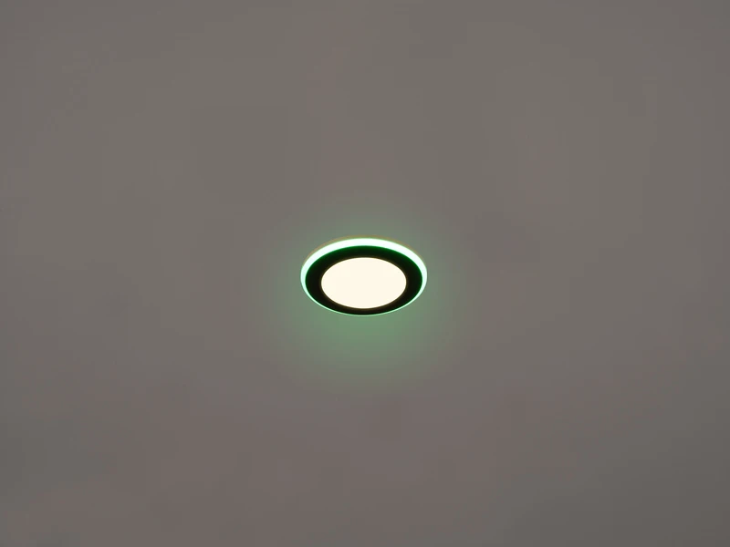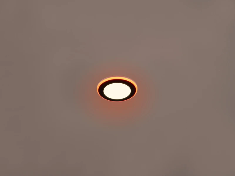 Die fest verbauten SMD LED Module mit einer Leistung von 5 Watt und 350 Lumen sorgt für ein angenehmes warmweißes Licht. Innenlicht und äußerer Ring sind getrennt schaltbar.