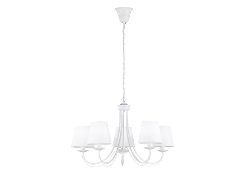 Mit ihrem feinem Design verleiht diese weiße Pendellampe jedem Raum das gewisse Etwas. Diese hochwertige Hängeleuchte beeindruckt mit ihrer schlichten und dennoch stilvollen Deckenkrone mit drei Stoffschirmen in Weiß.