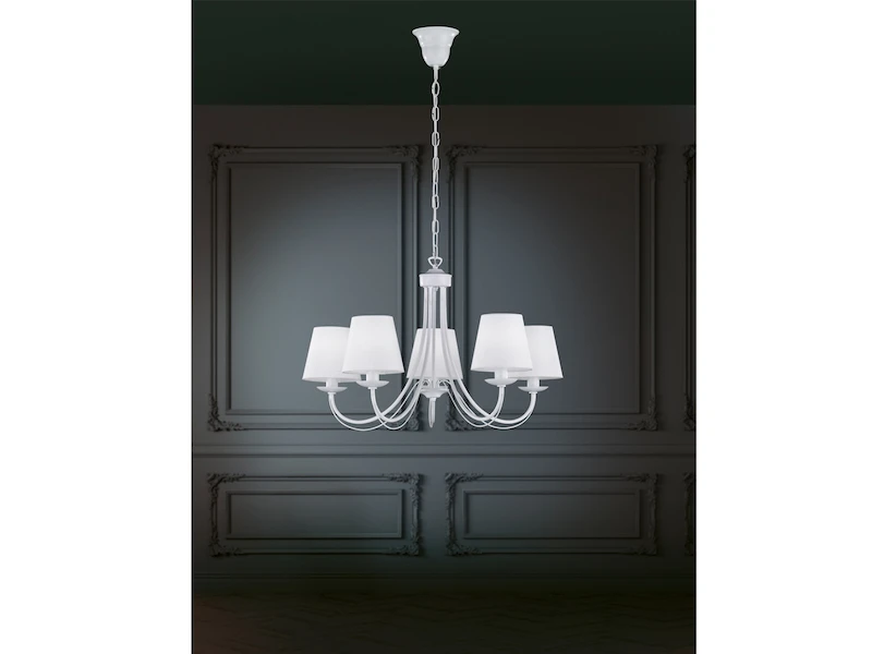 Die Hängeleuchte ist mit fünf E14 Fassungen ausgestattet und ist für Leuchtmittel mit einer Leistung von jeweils 28 Watt geeignet. Diese sind nicht im Lieferumfang mit enthalten. Bei Einbau eines geeigneten Leuchtmittels und eines Wanddimmers können Sie die Leuchte über Ihre Hausinstallation dimmen und so zusätzlich für eine ganz individuelle Beleuchtung sorgen.