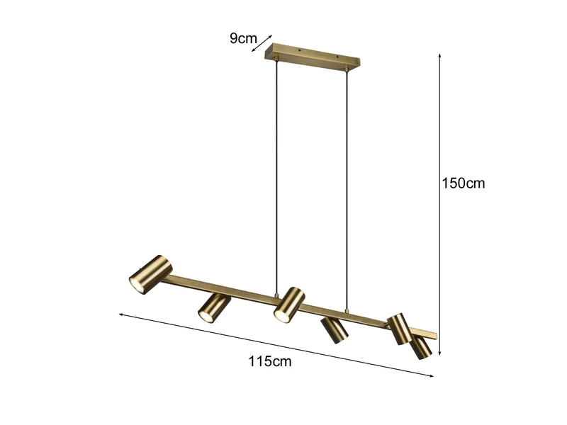 Die einzelnen Strahler der Hängeleuchte sind schwenkbar und ermöglichen es Ihnen, das Licht in die gewünschte Richtung zu lenken. Dadurch können Sie gezielt bestimmte Bereiche hervorheben und eine angenehme Beleuchtung schaffen.
