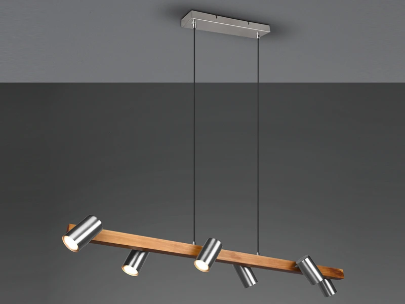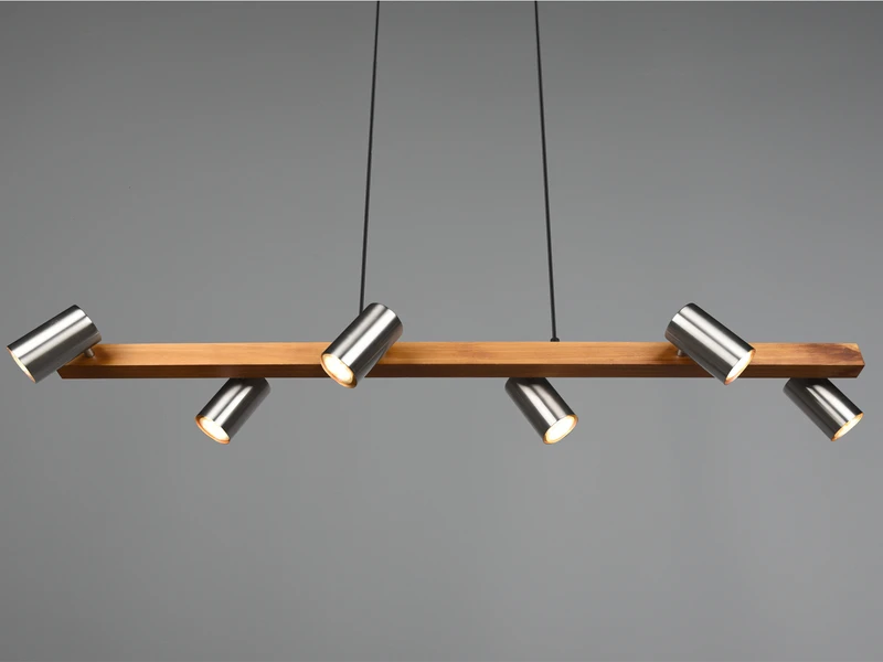 Die große Pendelleuchte MARLEY aus dem Hause Trio Leuchten ist eine moderne Balkenpendelleuchte für Ihr Zuhause. Durch den angesagten Material-Mix aus Naturholz und dem silbernen matten Metall ist die Pendelleuchte vielseitig einsetzbar und lässt sich mit vielen verschiedenen Einrichtungsstilen kombinieren.