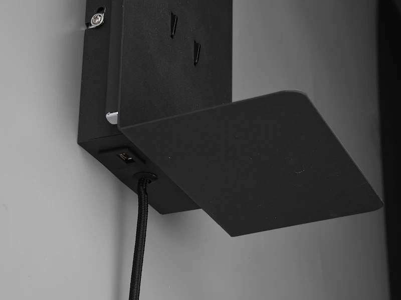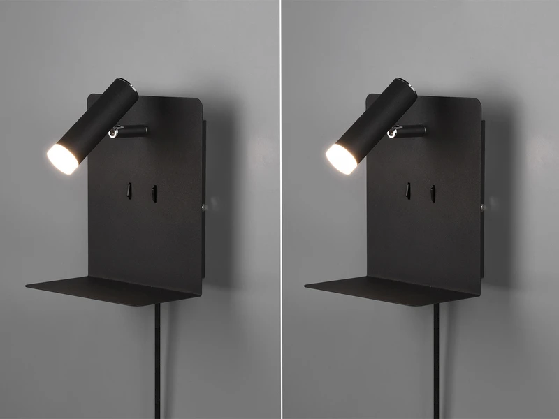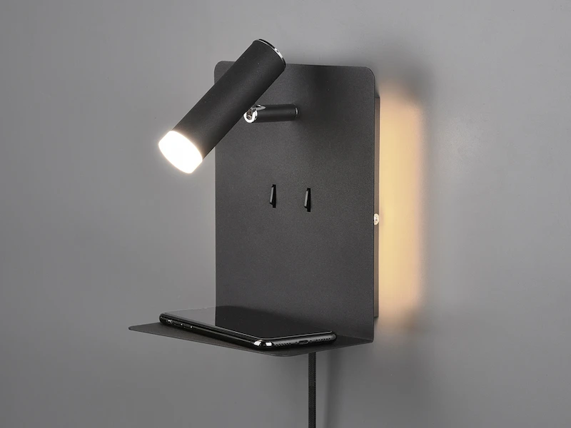 Zusätzlich verfügt die Wandleuchte über eine Ablage sowie einen USB-Anschluss mit Ladefunktion, so dass elektronische Geräte problemlos abgelegt und gleichzeitig geladen werden können. Des Weiteren ist die Leuchte dank des Features FLEXconnect sowohl für den Festanschluss als auch für den Gebrauch mit Steckerzuleitung geeignet.