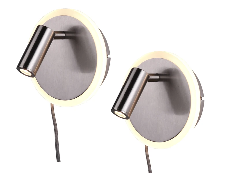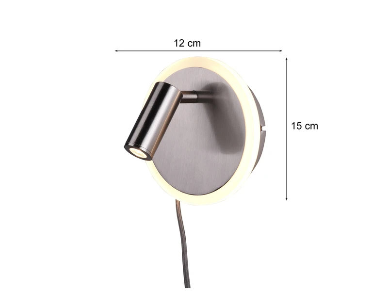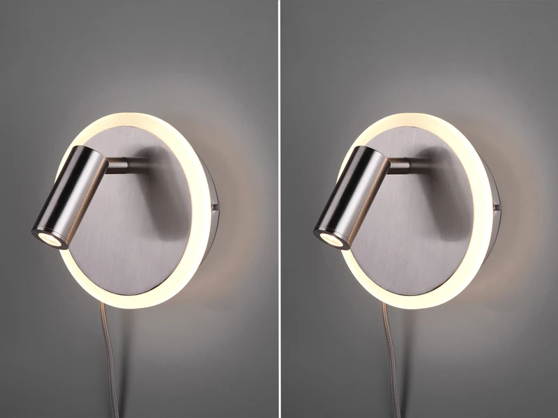 Die Leseleuchte ist über ihr Gelenk drehbar und schwenkbar, so können Sie ganz nach Ihrem Bedarf die Lichtausrichtung individuell einstellen. An der Blende des Sockels befinden sich eine weitere rund umlaufende LED für eine dezente indirekte Beleuchtung. Die Lichtquellen können über mehrfaches schalten des Schnurschalters oder des integrierten Schalters getrennt voneinander bedient werden.