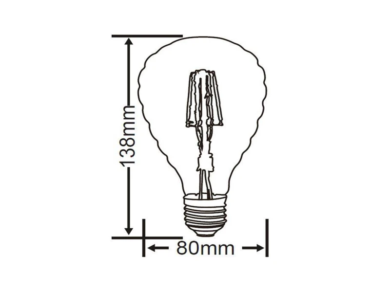 Das Leuchtmittel hat einen Durchmesser von 8cm, eine Höhe von 13,8cm und verleiht mit seinem gemusterten Korpus aus amberfarbigem Glas jeder Leuchte den ultimativen Glow.