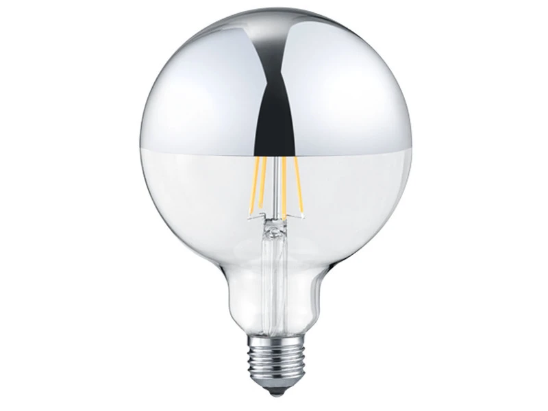 Dieses runde LED Leuchtmittel verleiht mit seinem eleganten Korpus aus transparentem Glas mit Chrome jeder Leuchte den ultimativen Glow.