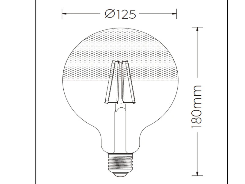 Das große Leuchtmittel hat einen Durchmesser von 12,5cm, eine Höhe von 18cm, ist extern dimmbar, und passend für alle Leuchten mit einer E27 Fassung.