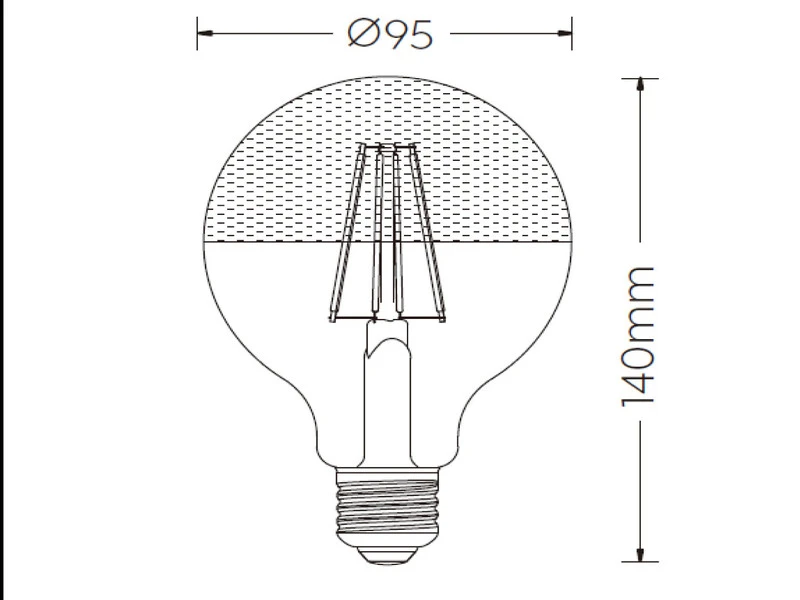 Das große Leuchtmittel hat einen Durchmesser von 9,5cm, eine Höhe von 14cm, ist extern dimmbar, und passend für alle Leuchten mit einer E27 Fassung.