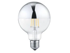 Dieses Chrome Globe Filament LED hat eine Leistung von 7 Watt, 680 Lumen, und verbreitet mit 2700 Kelvin ein warmweißes Licht. Mit seiner langen Lebensdauer ist es um ein vielfaches sparsamer als ein herkömmliches Leuchtmittel.
