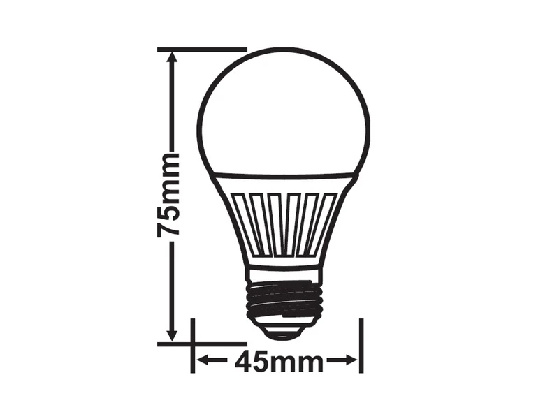 Das Leuchtmittel hat einen Durchmesser von 4,5cm, eine Höhe von 7cm, ist nicht dimmbar, und passend für alle Leuchten mit einer E27 Fassung.