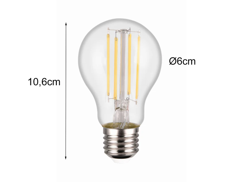 Das Leuchtmittel hat einen Durchmesser von 6cm, eine Höhe von 10cm, und ist passend für alle Leuchten mit einer E27 Fassung.