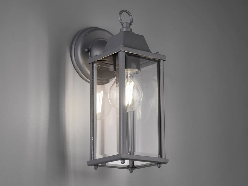 Gefertigt ist die Außenleuchte aus wetterfestem Druckguss Aluminium und klarem Glas. Die Oberfläche in Anthrazit lässt sich vielfältig kombinieren und sorgt für ein modernes Erscheinungsbild.