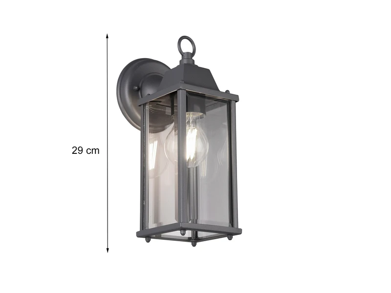Die Wandleuchte hat eine Höhe von 29cm und eine Breite von 11,5cm. Mit einer Schutzart von IP23 kann sie in vielen Outdoor Bereich zur Fassadenbeleuchtung eingesetzt werden, z.B. als Außenbeleuchtung für Ihren Eingangsbereich, als Terrassenbeleuchtung oder auch als Wegeleuchte an Hauswänden.