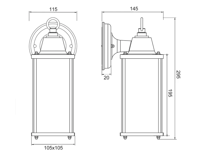 Die eckige Laterne ist mit einer E27 Fassung ausgestattet und für E27 Leuchtmittel mit einer maximalen Leistung von 40 Watt geeignet. Dies ist nicht im Lieferumfang enthalten.