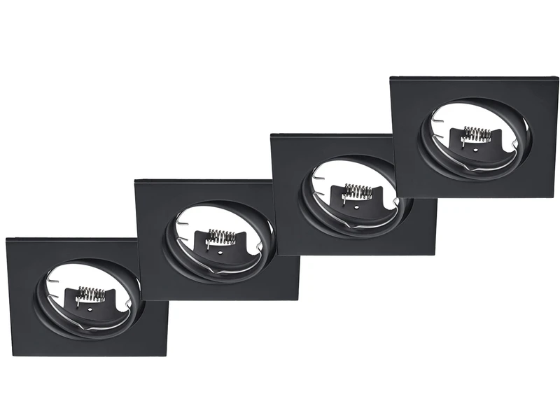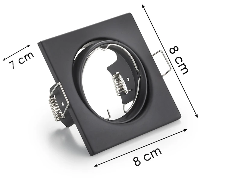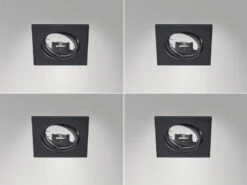 Gefertigt sind die Deckenlampen aus Schwarz mattem Metall. Der eckige Spot hat eine Größe von 8 x 8 cm sowie eine Einbautiefe von 9 cm und lässt sich individuell ausrichten. Jede Einbaulampe ist mit einer GU10 Fassung ausgestattet und für ein Leuchtmittel bis max 15 Watt geeignet.