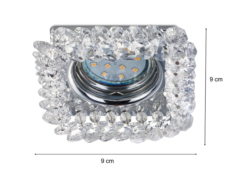 Die Farbgestaltung in Chrom mit dem edlen Kristallbehang, fügt sich hervorragend in moderne und klassische Einrichtungskonzepte ein.