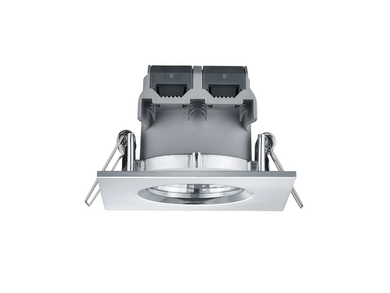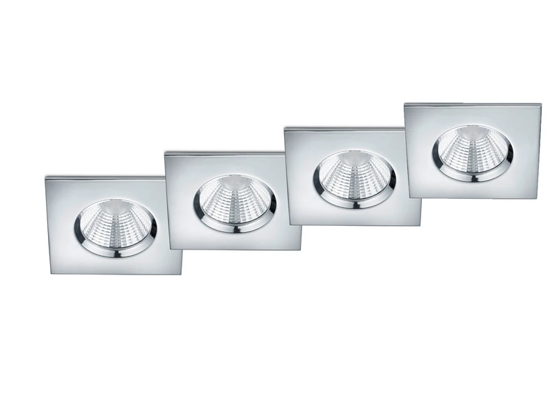 Die quadratischen Einbaulampen aus Metall haben eine Größe von 8,5 x 8,5 cm und eine Höhe von 5,4 cm. Für den Einbau wird ein 7,2 cm großer Ausschnitt und eine Einbautiefe von min. 6,2 cm benötigt.