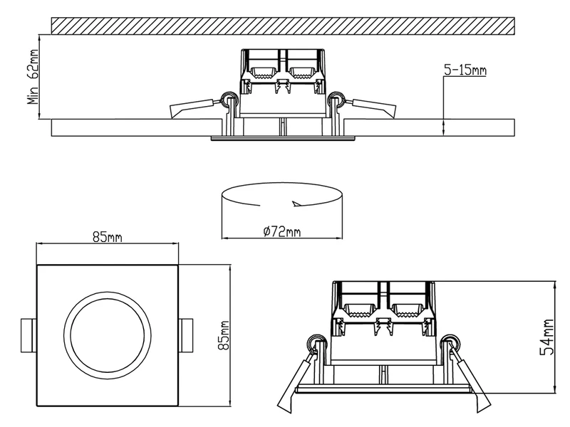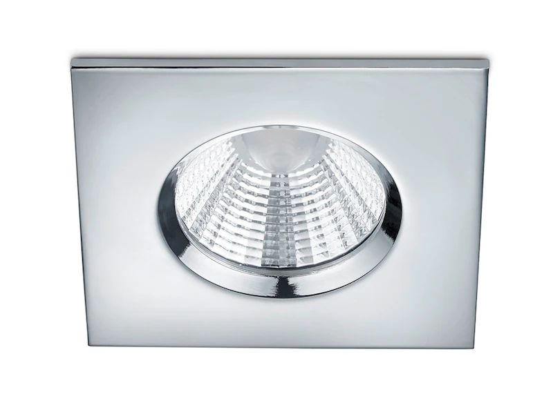 Gefertigt ist der Strahler aus Chrom glänzendem Metall. Der Spot hat eine Größe von 8,5 x 8,5 cm sowie eine Einbautiefe von 6,8 cm.