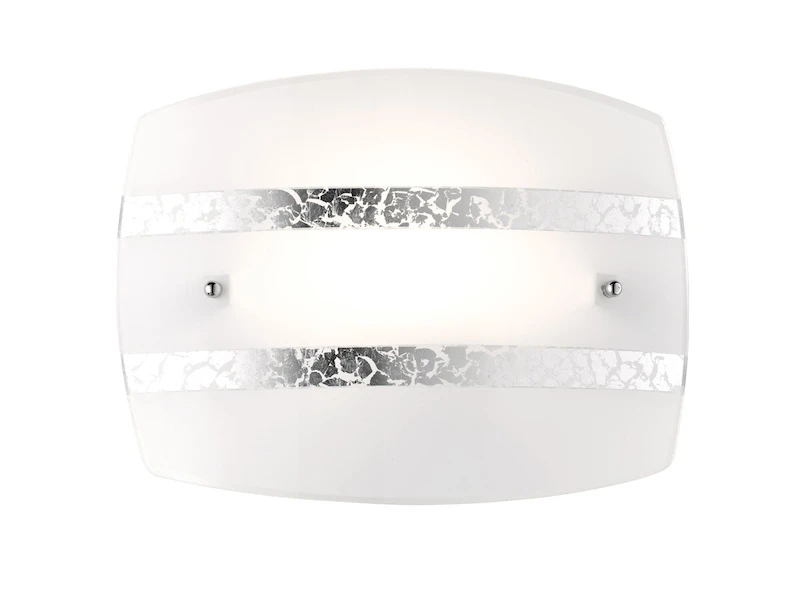 Schaffen Sie moderne Lichtakzente und ein stimmungsvolles Ambiente, mit dieser edlen Wandlampe mit Glaslampenschirm in Opal weiß und 2 modischen Dekor Streifen in silberfarben.