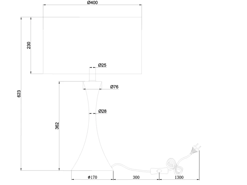 Die Tischleuchte ist mit einer E27 Fassung ausgestattet und für ein Leuchtmittel bis max. 60 Watt geeignet. Dies ist nicht im Lieferumfang enthalten.