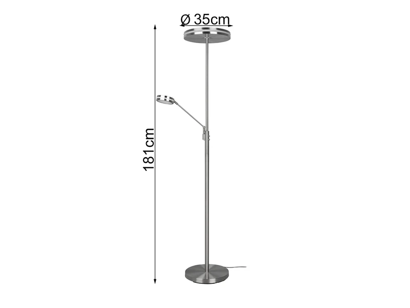 Dank der klassischen Farbgestaltung in Silber matt lässt sich die 181cm hohe Leuchte mit vielen Einrichtungsstilen kombinieren.