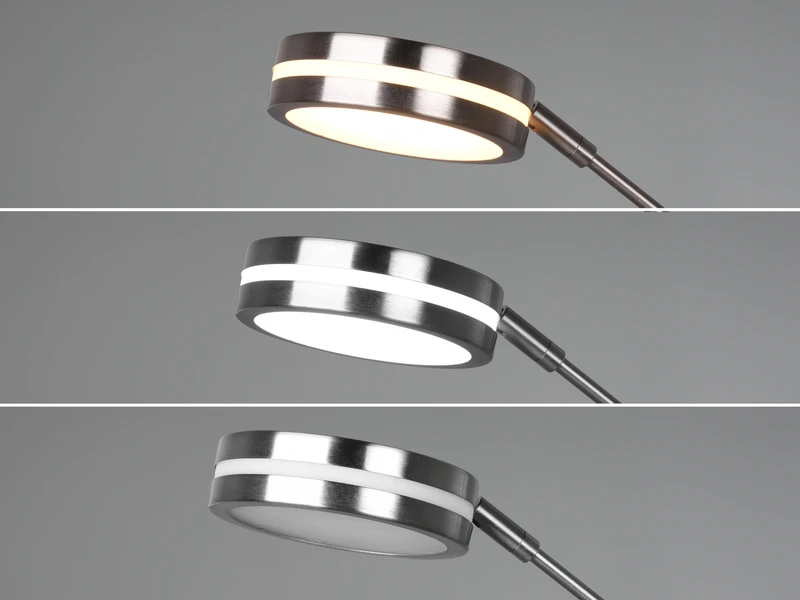 Die Lichttemperatur lässt sich stufenweise von warmweiß bis neutralweiß einstellen und die Memoryfunktion speichert die zuletzt ausgewählte Lichteinstellung und verwendet sie beim erneuten Einschalten der Leuchte.