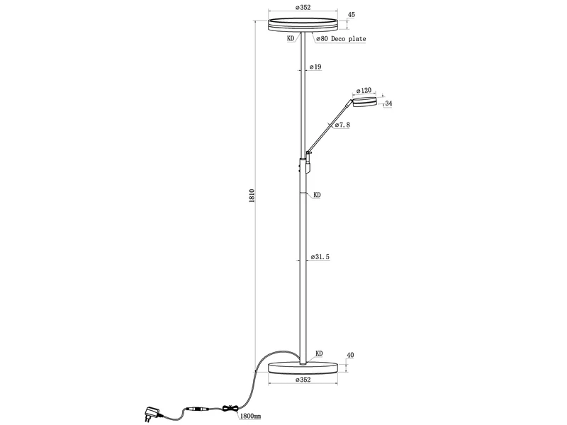 Die Leuchte verfügt zusätzlich über einen verstellbaren Lesearm, der sich getrennt von der Hauptlichtquelle schalten lässt und für die passende Beleuchtung beim Lesen oder Handarbeiten sorgt.