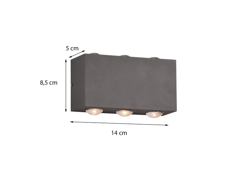 Mit einer Breite von 14 cm, einer Höhe von 8,5 cm sowie einer Wandausladung von nur 5 cm integriert sich die Wandleuchte problemlos in Ihren Outdoorbereich.