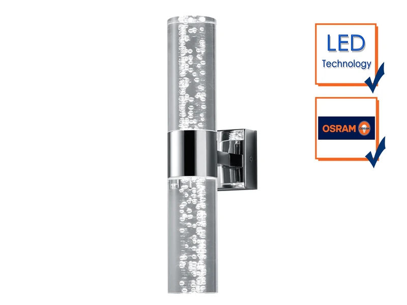 Die Wandlampe wird geliefert mit einem fest verbauten Osram LED Leuchtmittel mit 2x 3,2 Watt LED 300 Lumen und 3000K.
