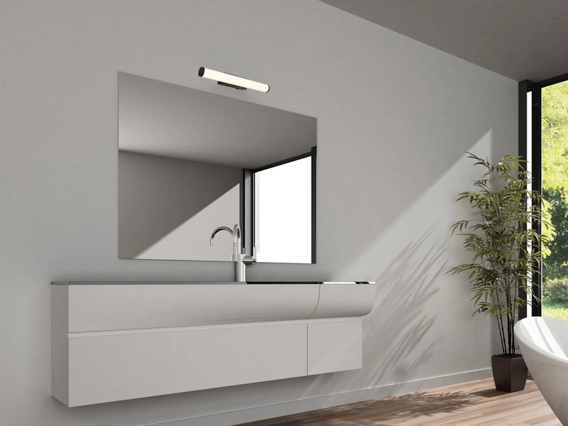 Auf der Suche nach einer geeigneten Badezimmerbeleuchtung kommt man auch an dieser praktischen, zeitlosen Bad Wandleuchte aus dem Hause Trio Leuchten nicht vorbei. Die minimalistische Wandleuchte MATTIMO gibt über die gesamte Breite ein sanftes Licht ab, welches sich gleichmäßig im Anwendungsbereich verteilt und eine ausreichende Lichtversorgung bietet. Das längliche Design findet sich optimal neben oder über dem Spiegel im Waschbereich wieder und sorgt für stilsichere Akzente.