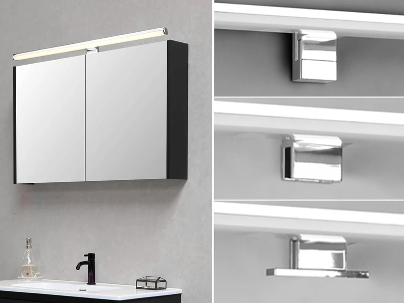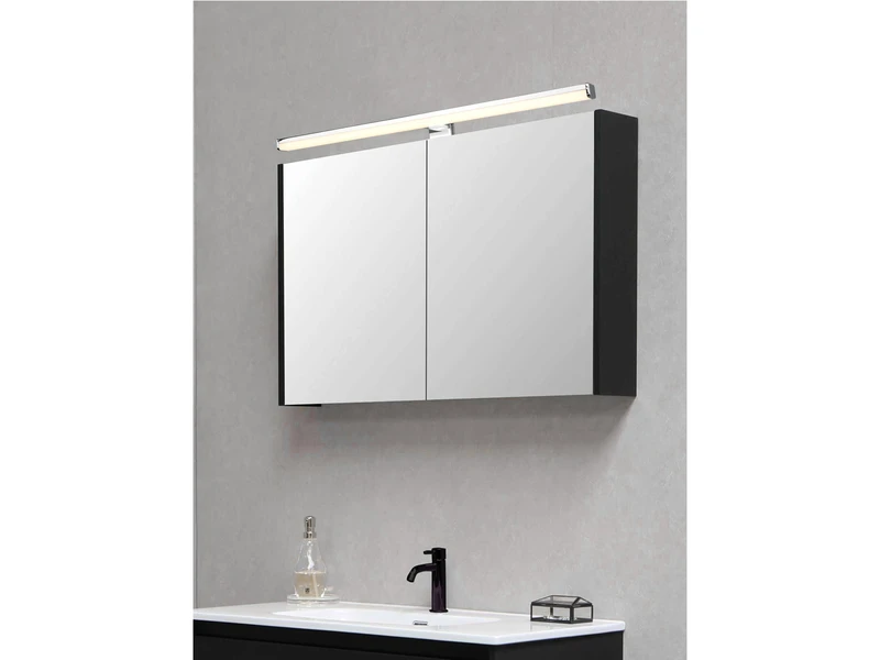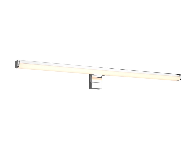 Der Chrom glänzende Korpus verleiht der Badezimmer Lampe eine exklusive Optik. Mit einer Breite von 60 cm und einer Ausladung von 10,5 cm ist sie auch für kleinere Bäder gut geeignet und überzeugt durch ihr effektives, aber dennoch blendfreies Licht.