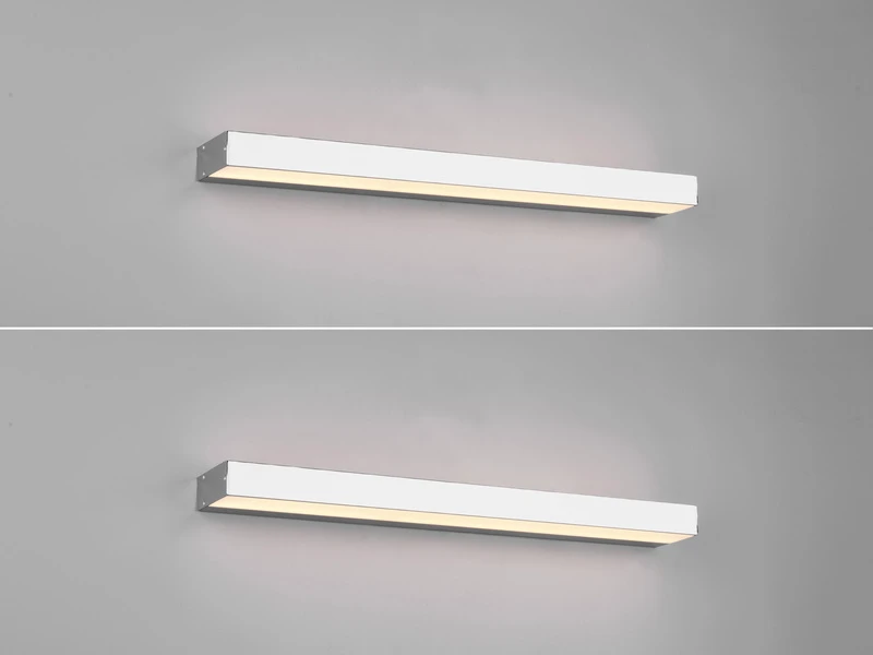 Der Silber Chrom Korpus verleiht der Badezimmer Lampe eine exklusive Optik. Mit einer Breite von 60 cm und einer Ausladung von 8cm kommt sie auch in großen Bäder gut zur Geltung und überzeugt durch effektives, aber dennoch blendfreies Licht.