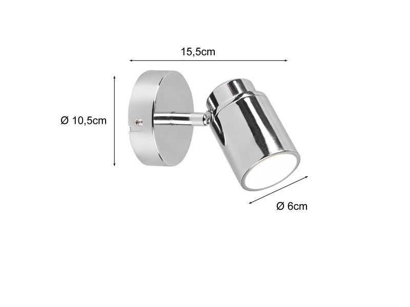 Die kleine Spotleuchte hat eine zeitlose Optik und sorgt nicht zuletzt durch die flexible Ausrichtung des Spots für eine angenehme Ausleuchtung der gewünschten Bereiche. Das stimmige zeitlose Design in Silber Chrom, sorgt für ein modernes Erscheinungsbild und lässt sich harmonisch in vorhandene Einrichtungsstile integrieren. Der Strahler hat einen Durchmesser 10,5 cm und eine Ausladung von 15,5 cm und ist für die Montage an Wand und Decke geeignet.
