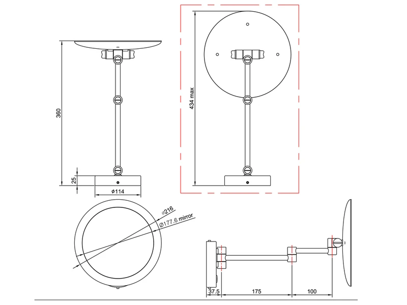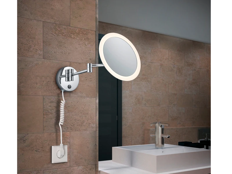 Mit einem Durchmesser von 21,6 cm ist der Badezimmerspiegel auch für kleinere Bäder oder fürs Gäste WC perfekt geeignet und überzeugt trotz ihrer überschaubaren Größe durch ein effektives, blendfreies LED Licht. Darüber hinaus ist der Spiegel über zwei Gelenke schwenkbar. So können Sie ihn individuelle und passend ausrichten.