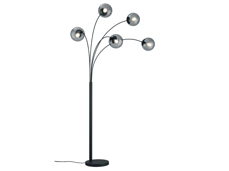 Bogenleuchten sind eine elegante Wahl, um Ihrem Zuhause einen Hauch von Raffinesse zu verleihen. Und wenn es um beeindruckende Ausmaße, hochwertiges Design und praktische Funktionalität geht, dann ist die 180cm große Bogenleuchte mit 85cm Ausladung und 5 Rauchglas-Kugel-Lampenschirmen die perfekte Wahl.
