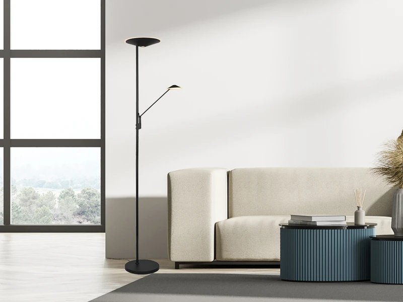 Neben dem Sofa oder in einer gemütlichen Leseecke platziert, sorgt die über einen Sensordimmer stufenlos dimmbare Standlampe für ein angenehmes Lichtambiente.