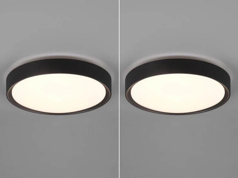 Jede flache Leuchte verfügt über ein fest verbautes LED Leuchtmittel mit einer Lichtstärke von 1600 Lumen, 18 Watt und 3000 Kelvin (Warm Weiß).
