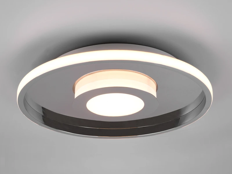 Die LED Deckenleuchte ASCARI von Trio Leuchten ist mit ihrem runden und flachen Design ein echter Blickfang in Ihrem Zuhause. Die moderne Deckenleuchte in Silber Chrom hat einen Durchmesser von 40 cm. Sie fügt sich harmonisch in jeden Raum ein und verleiht ihm ein elegantes Ambiente.