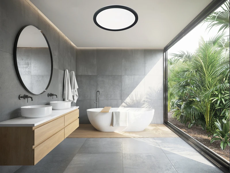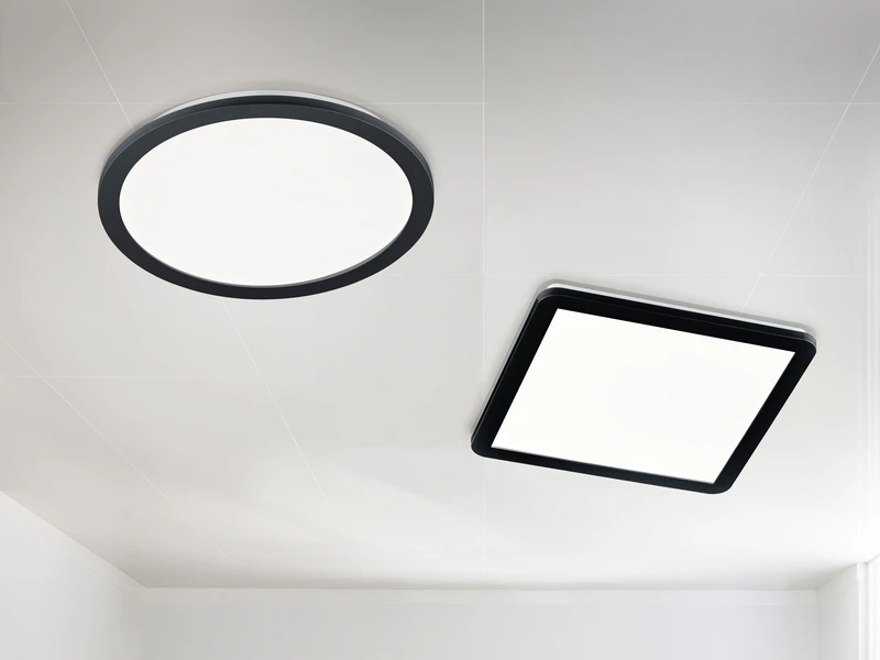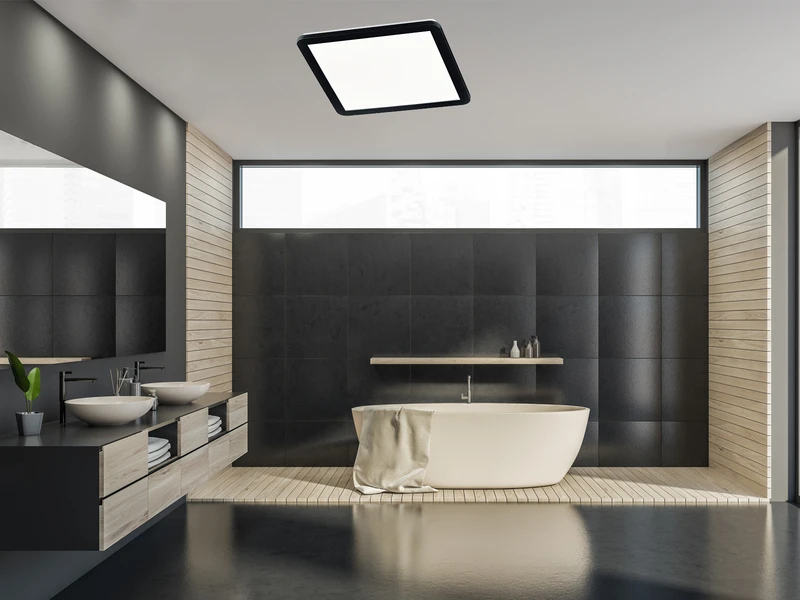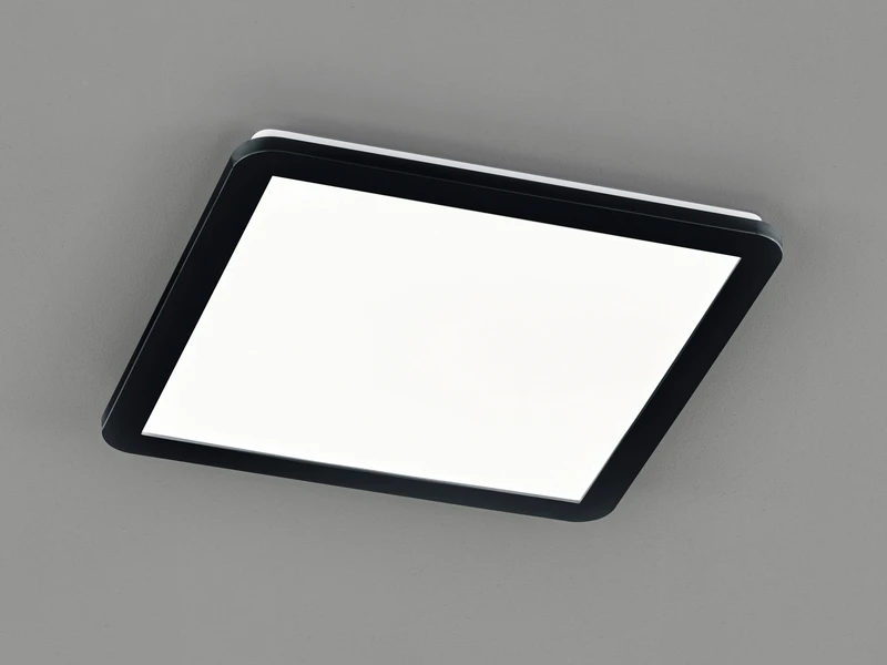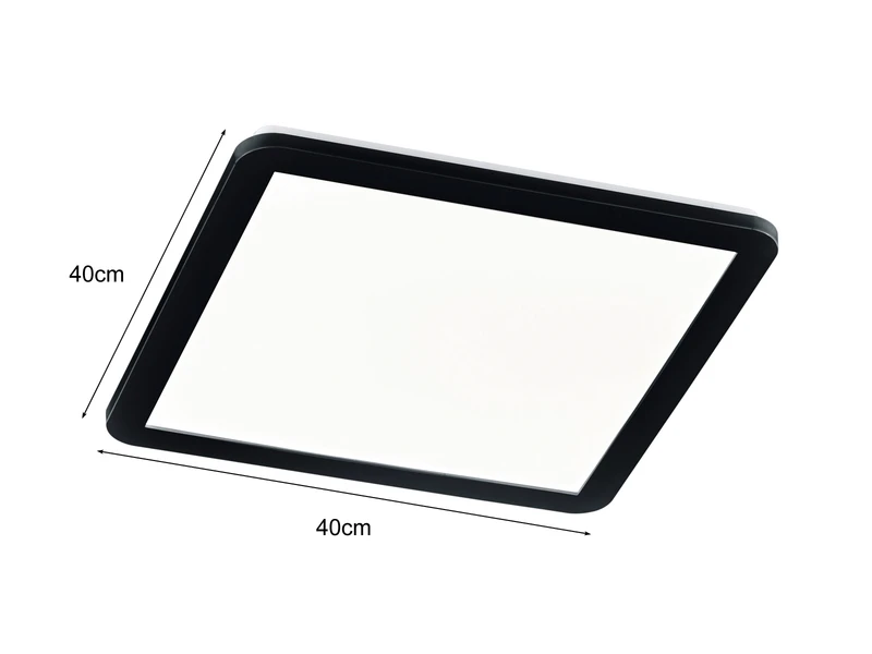Dank Schutzart IP44 ist die Lampe gegen Spritzwasser geschützt und damit perfekt fürs Badezimmer geeignet. Das eckige und besonders flache Design in Kombination mit einem Schwarz matten Rand und einem weißen Acrylcover passt sich mühelos jedem Wohnstil und Farbkonzept an. Dabei hat die Lampe eine Größe von 40 x 40 cm sowie eine Höhe von nur 3 cm.