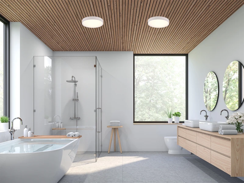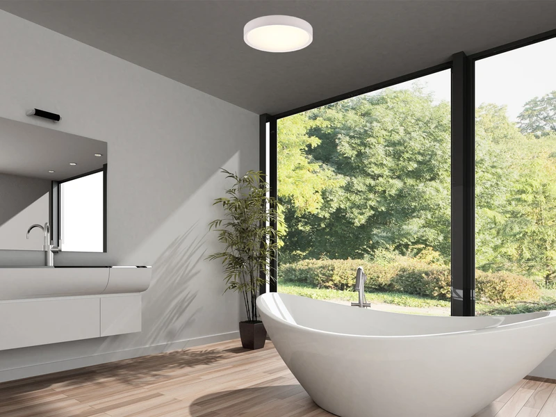 Dank Schutzart IP44 ist die Lampe gegen Spritzwasser geschützt und damit perfekt für alle Feuchträume, wie Badezimmer und Gäste WC geeignet. Die edle Optik in Weiß, unterstreicht den minimalistischen Einrichtungsstil und sorgt für ein helles, freundliches Ambiente. Dabei hat die Lampe einen Durchmesser von 33 cm sowie eine Höhe von nur 9 cm.