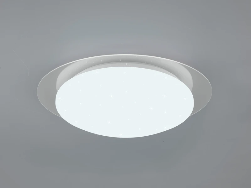 Dank praktischer Zusatzfunktionen und auffälligem Sternenhimmel Effekt wird die Leuchte zu einem Blickfang in Ihren Wohnräumen. Über die im Lieferumfang enthaltene Fernbedienung lassen sich die Lichtintensität sowie die Lichtfarbe stufenlos einstellen und dimmen, sodass die Lichtstimmung ganz individuell angepasst werden kann.