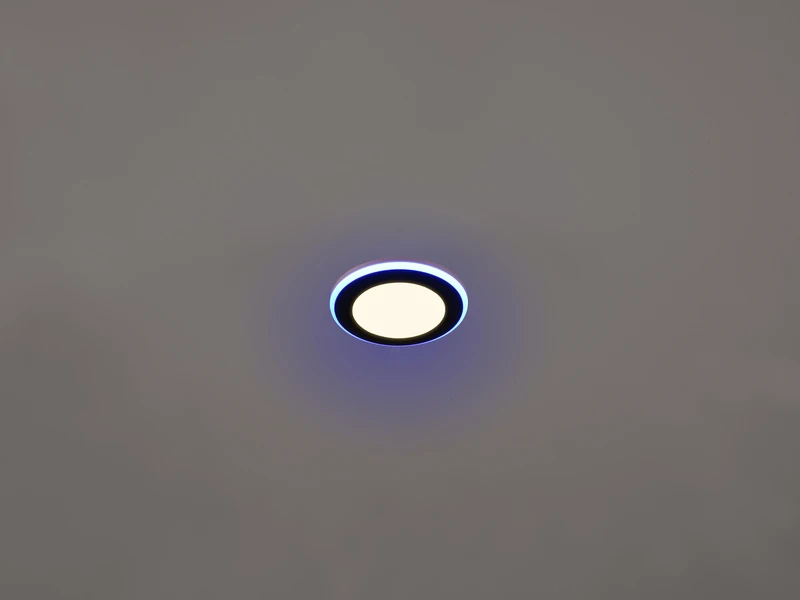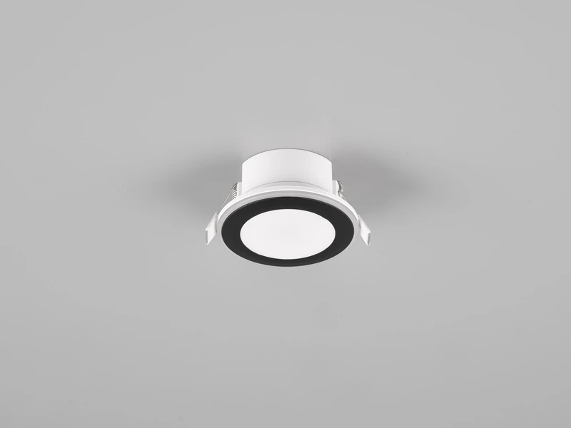 Das fest verbaute SMD LED Modul mit einer Leistung von 5 Watt und 350 Lumen sorgt für ein angenehmes warmweißes Licht. Innenlicht und äußerer Ring sind getrennt schaltbar.